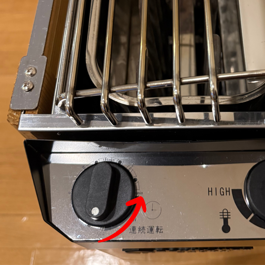 左ダイヤルを反時計回りに90度回してあげると連続運転で温め続けてくれます。