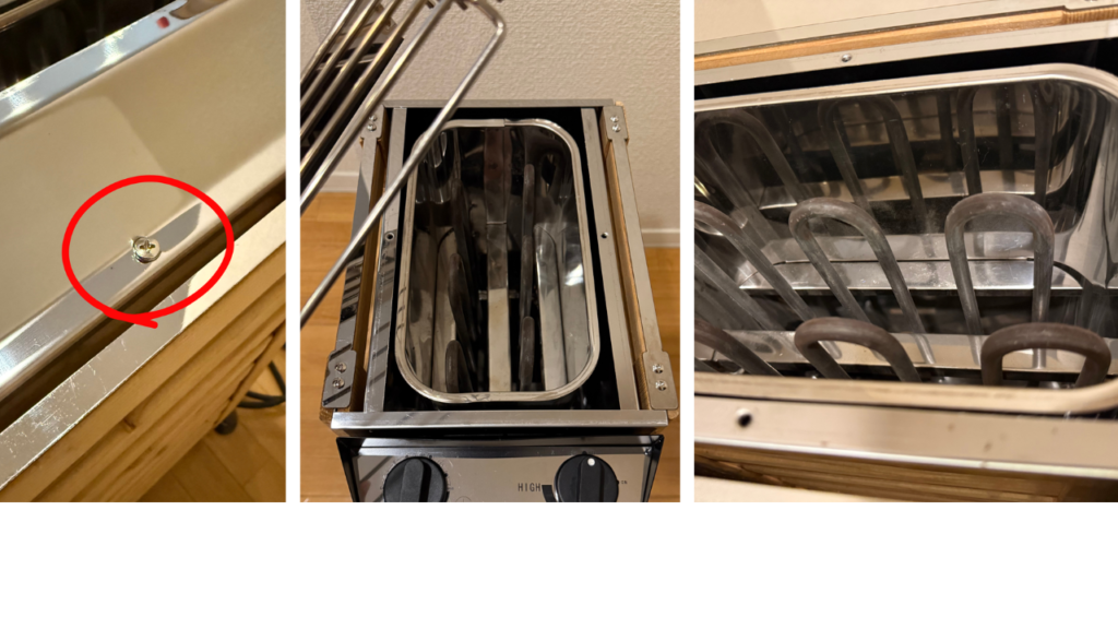 ストーンガードのネジを外すと、電熱線が生えたストーントレイが姿を現します。