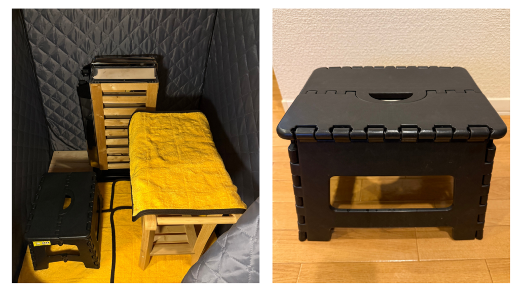 このようなスツールを足元に置き、足の高さを上げてあげる事でより温度を楽しむことができるのでおすすめです!
